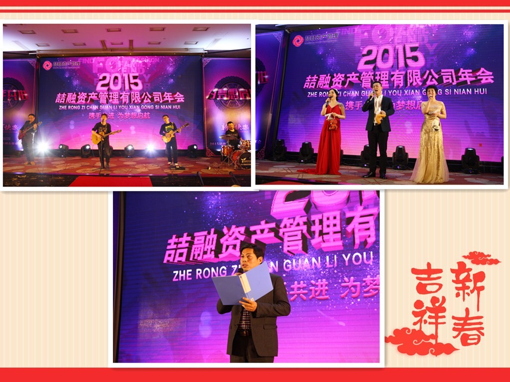騰盛世歲更替,春滿神州喜滿懷;紫氣滿堂萬(wàn)象新,桃花盛開(kāi)報(bào)春來(lái)。2016年1月16日喆融資產(chǎn)、浙融汽車有限公司在納德自由酒店舉辦2016年“攜手共進(jìn),為夢(mèng)想啟航”主題聯(lián)歡晚會(huì),總經(jīng)理方志紅、副總陳茂盛及徐敏、各地區(qū)分公司負(fù)責(zé)人和全體員工參與了